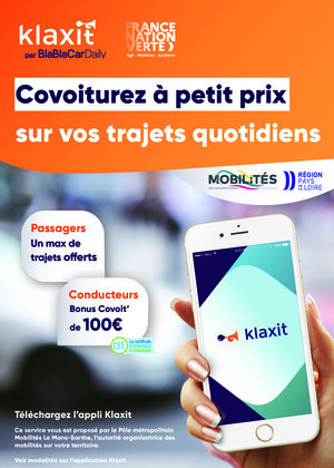 Covoiturage en Val de Sarthe Covoiturage : dans vos trajets quotidiens, faites le plein d’économie avec Klaxit ! Sur un territoire rural et périurbain avec des trajets domicile-travail en voiture prédominants, le (…)