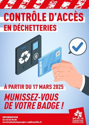 FONCTIONNEMENT DECHETERIE Nous souhaitions vous alerter sur le fait que les barrières vont être opérationnelles dans les déchèteries de Roëzé sur Sarthe et Guécélard à partir de ce lundi 17 mars 2025.