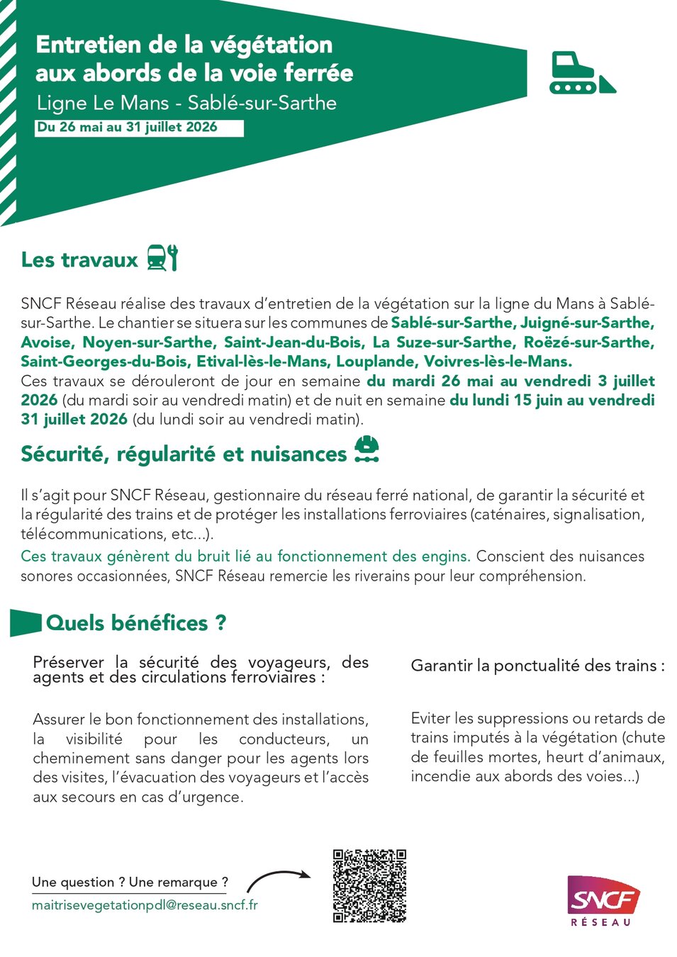 Entretien de la végétation aux abords de la voie ferrée, du 26 mai au 31 juillet 2026