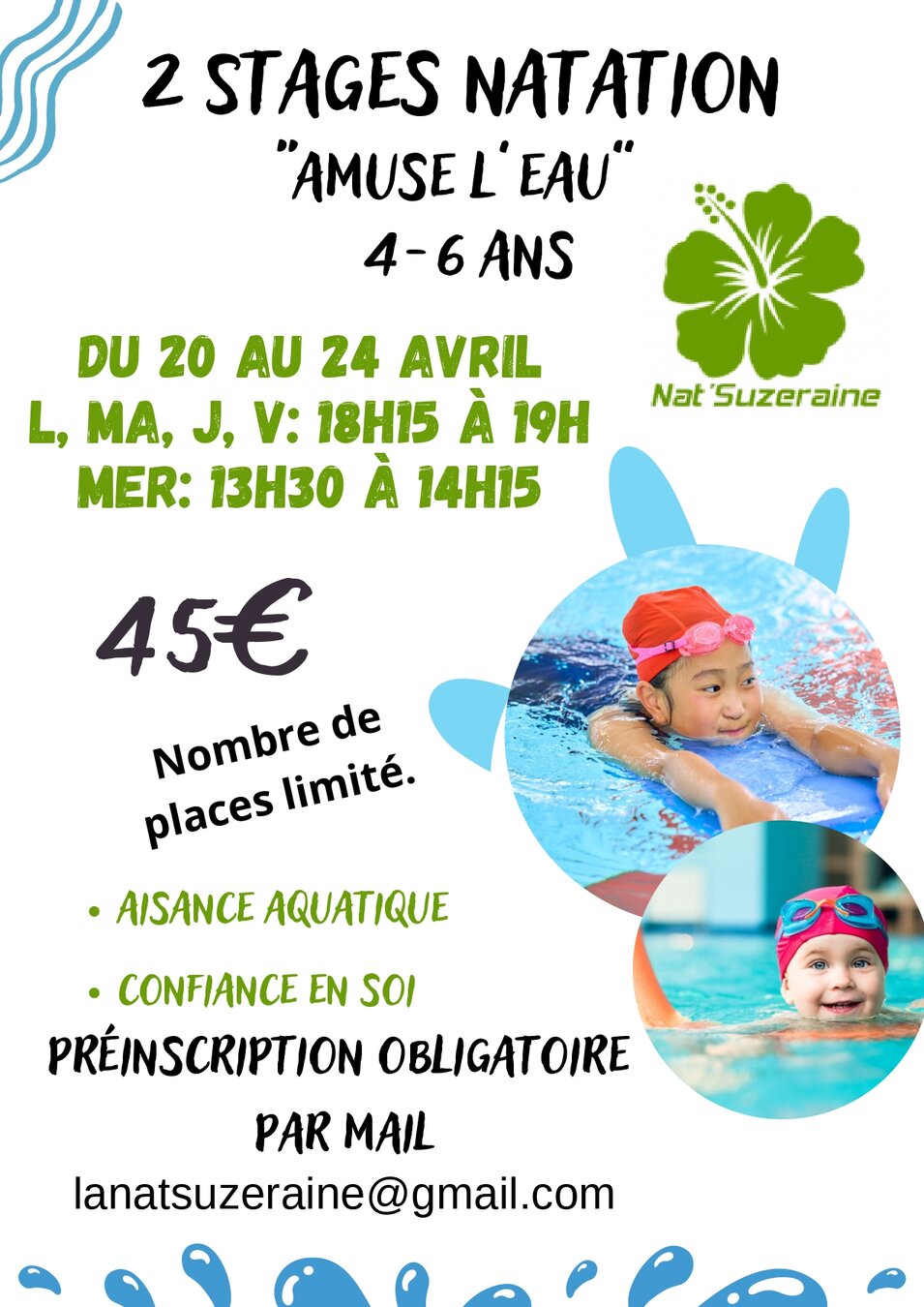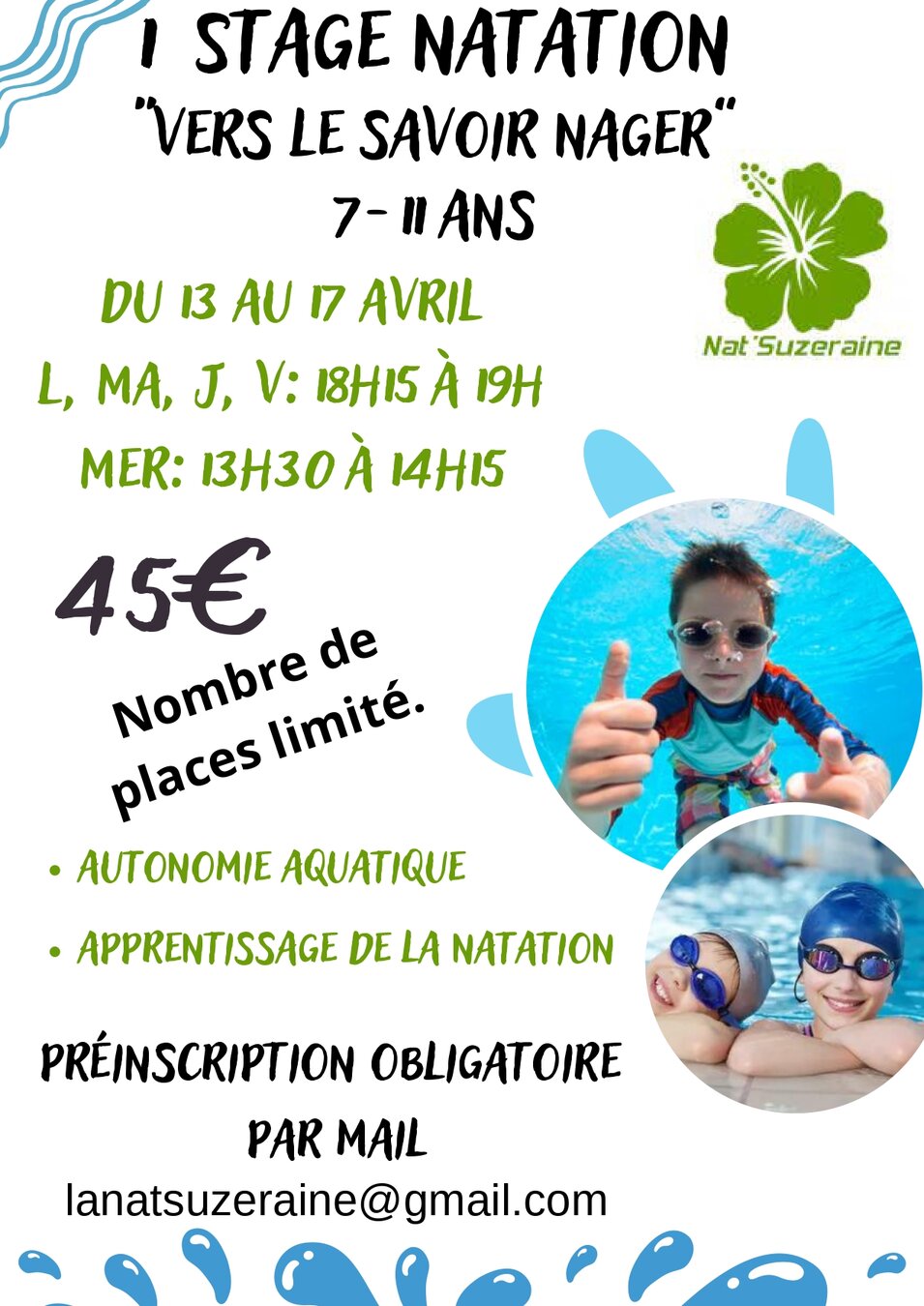 Durant les vacances de Pâques, le club de natation « La Nat’Suzeraine » propose à la piscine de la Suze :
